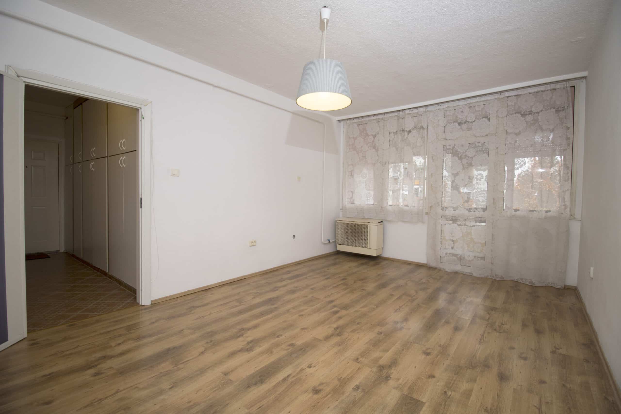– 1 tágas szoba erkéllyel, a társasház mögötti parkolóra, parkra való kilátással (csendes, nyugodt),